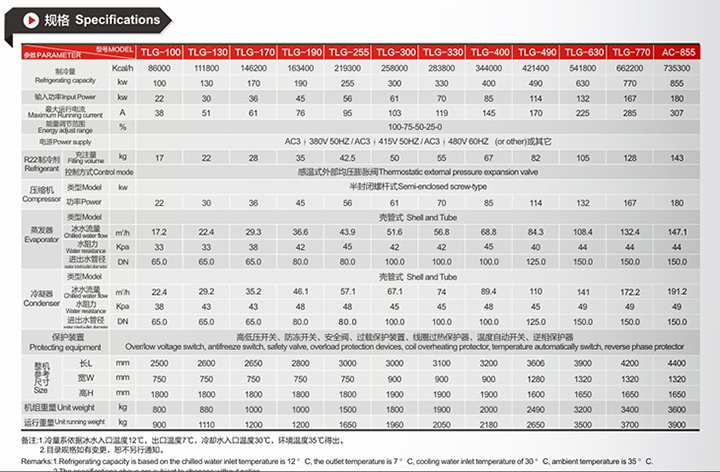 trolled ±2℃名義制冷量是依據(jù)冰水入口溫度12℃,出口溫度7℃,環(huán)境溫度35℃得出。