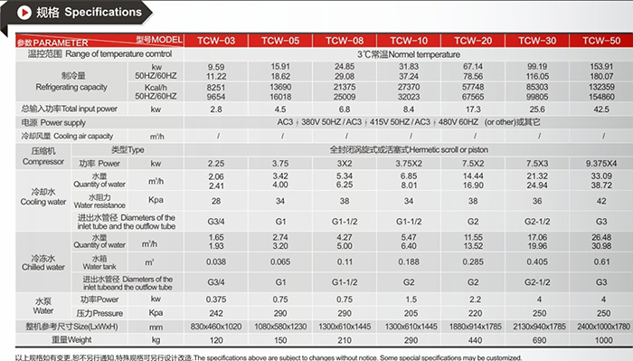 產(chǎn)品介紹:特點(diǎn): 1.采用歐美進(jìn)口壓縮機(jī)頭 2.銅管采用無(wú)氧焊接法 3.采用進(jìn)口組件,使用年限長(zhǎng) 4.微電腦觸摸式控制,操作簡(jiǎn)單 5.控制方式;采用進(jìn)口微電腦或(選購(gòu))PLC控制 6.采用兩組壓縮機(jī),可單獨(dú)使用或共同啟用(CW-10以上) 7.換熱效率好蒸發(fā)器及冷凝器,可節(jié)省能源30%以上